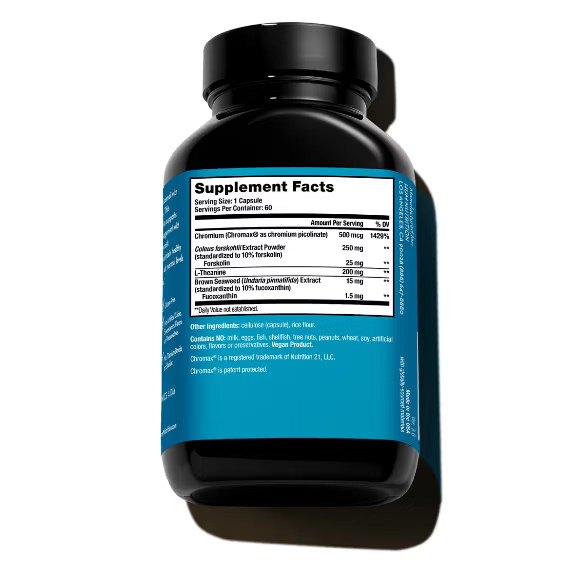 A caffeine-free blend of chromium, seaweed extract + L-theanine to naturally support blood sugar balance for reduced cravings and boosted metabolism.