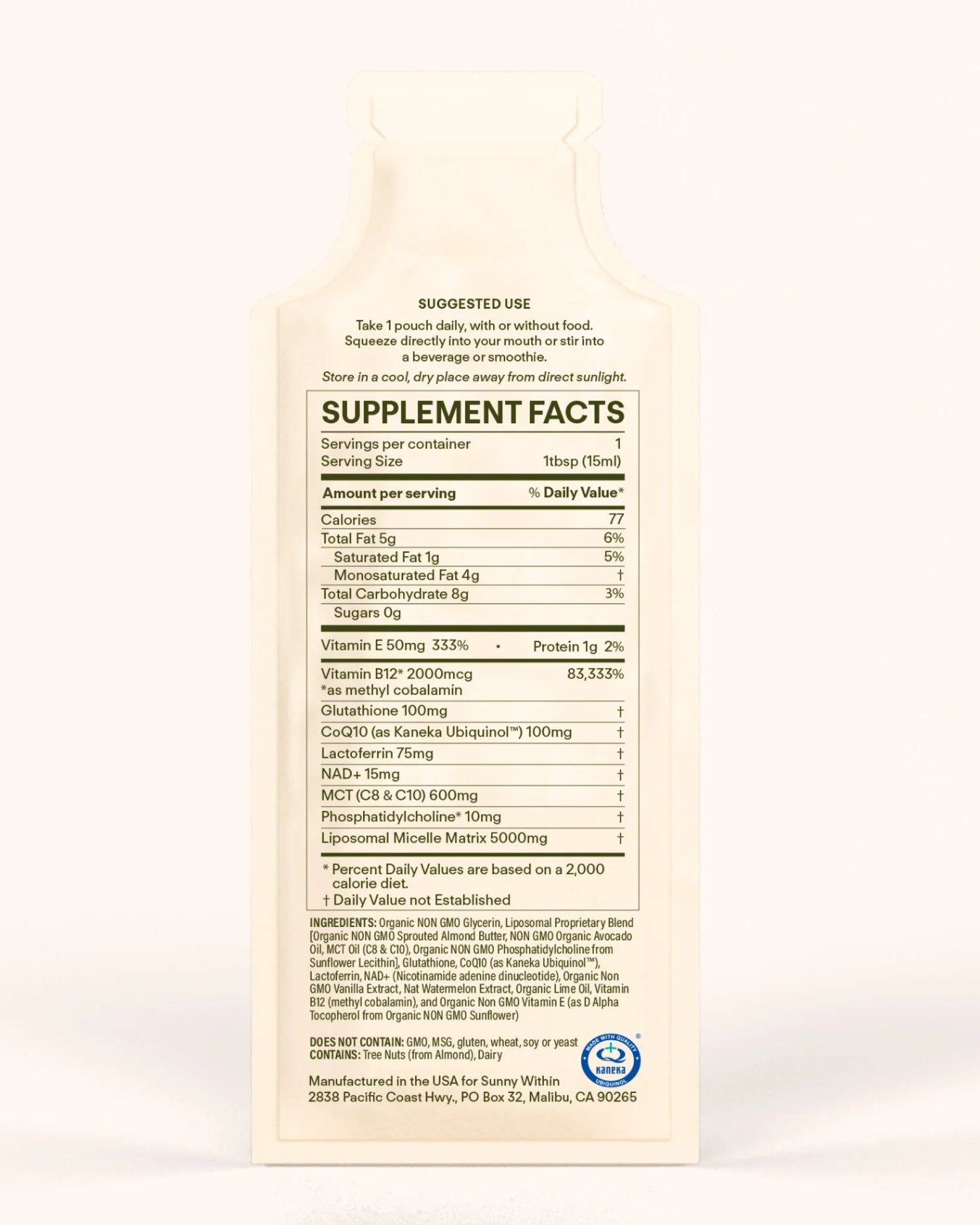 Breakthrough longevity and cellular health supplement powered by bioavailable NAD+, glutathione, and more..